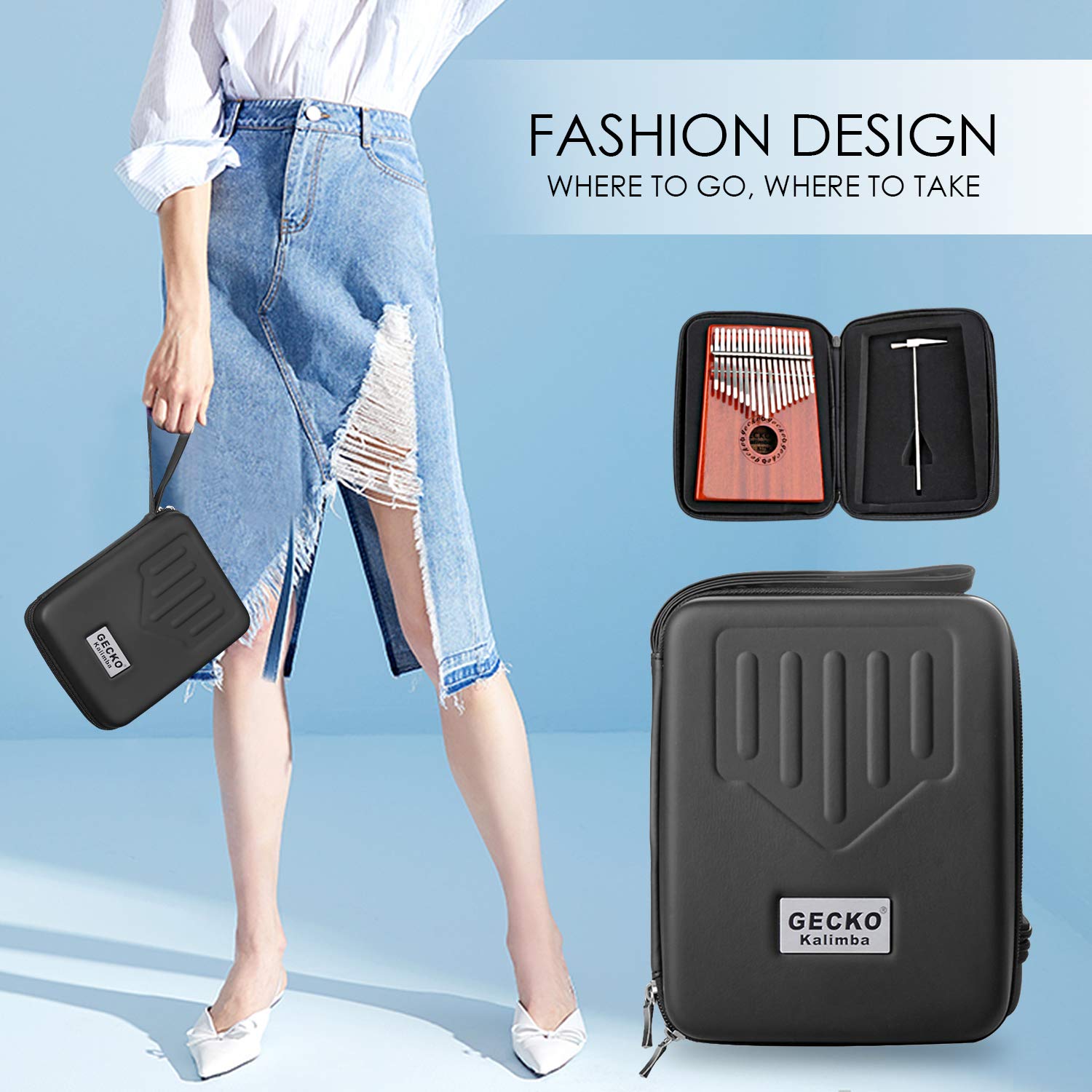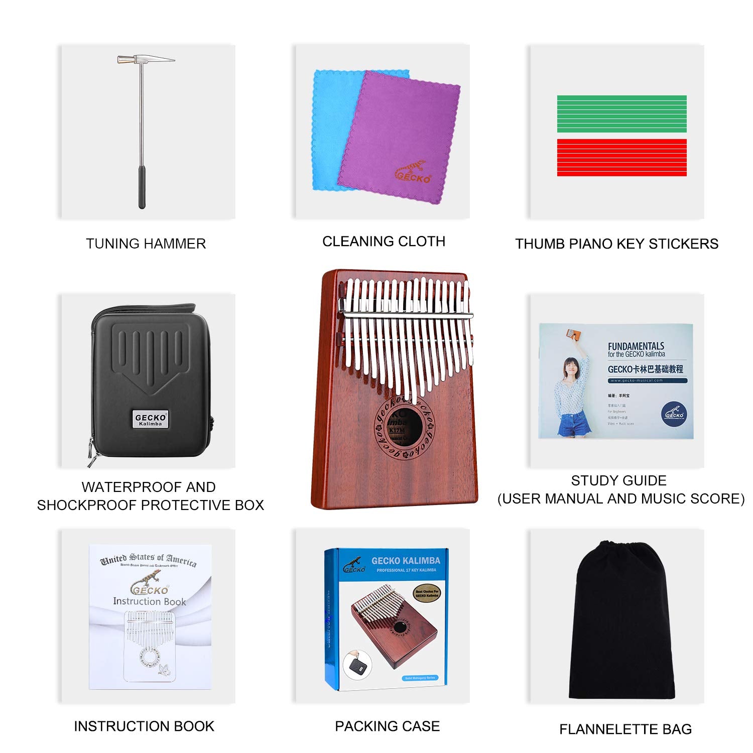 GECKO Kalimba Piano de polegar de 17 teclas com caixa protetora à prova d'água, martelo de afinação e instruções de estudo, piano portátil Mbira Sanza, som de meditação, presente para iniciantes e