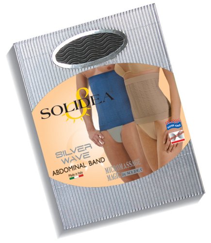 Details: SOLIDEA Silver Wave Abdominal BandSilver Wave Abdominal Bandè una morbida cintura elastica addominale in tessuto brevettato ad ondetridimensionali, esercita un' efficace azione micromassaggiante, stimola lamicrocircolazione, aiuta ad eliminare le adiposità ed i liquidi in eccesso;l'effetto contenitivo aiuta ad attenuare lo stimolo della fame. E' un ottimosostegno per la schiena, nella zona lombare, comprime modellando fianchi e addome. Iltessuto confortevole, leggero e traspirante garantisce una perfetta vestibilitàcome una seconda pelle ed è impercettibile sotto i vestiti. Altamente tollerabile,può essere indossata per tutto il giorno grazie anche allo speciale filatobatteriostatico agli ioni d'argento che grazie all'azione batteriostaticadegli ioni d'argento che ostacola la proliferazione batterica e mantiene inalteratol'equilibrio biologico della pelle. Colore: noisette. Componenti 80% poliammide, 20% elastan. Formato Taglie disponibili: 1-S, 2-M, 3-ML, 4-XL, 5-XXL. Cod.394A5SOSM0201/394A5SOSM0202/394A5SOSM0203/ 394A5SOSM0204/0394A5SOSM025
